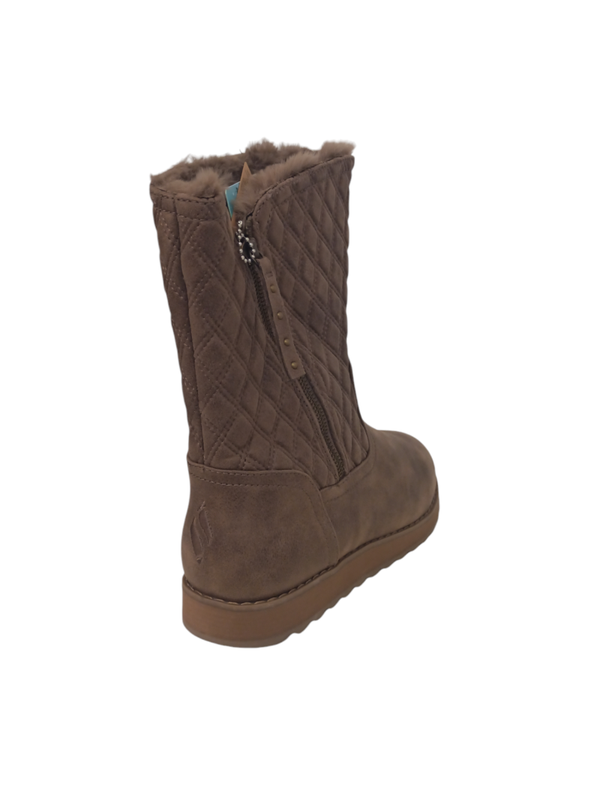 Fai salire la temperatura con lo stile di Skechers Keepsakes 2.0 - Morning Walks. Questo stivale invernale con cerniera presenta una tomaia in pelle vegan trapuntata, trattata con 3M® Scotchgard®, foderata in finta pelliccia e una soletta ammortizzata Warm Tech Memory Foam.