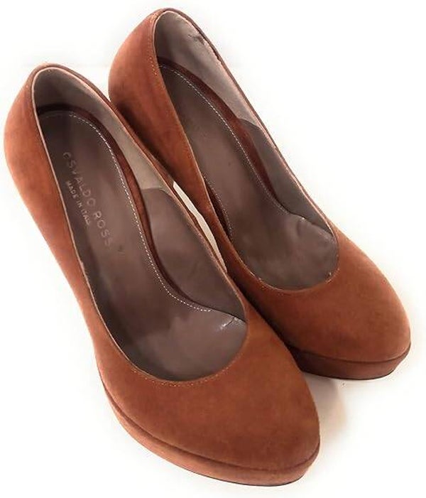 Osvaldo Rossi Art. 1072 Scarpa Donna in Camoscio Mattone con Tacco 12 Cm e Plateau 2 Cm Made in Italy