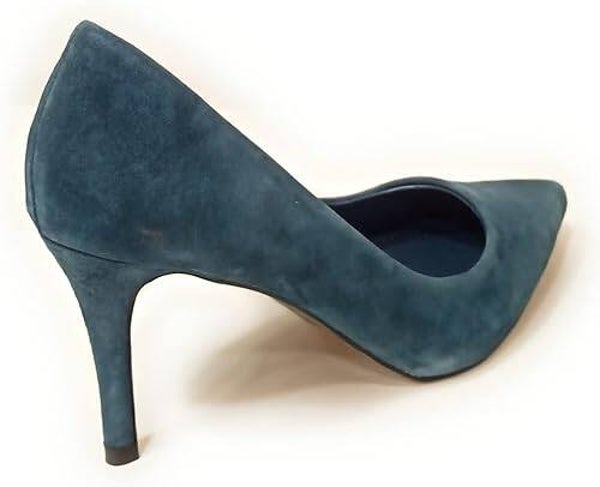 Mana Design M13034 Décolleté in Vera Pelle Scamosciata con Tacco 7 Cm Colore Bluette
