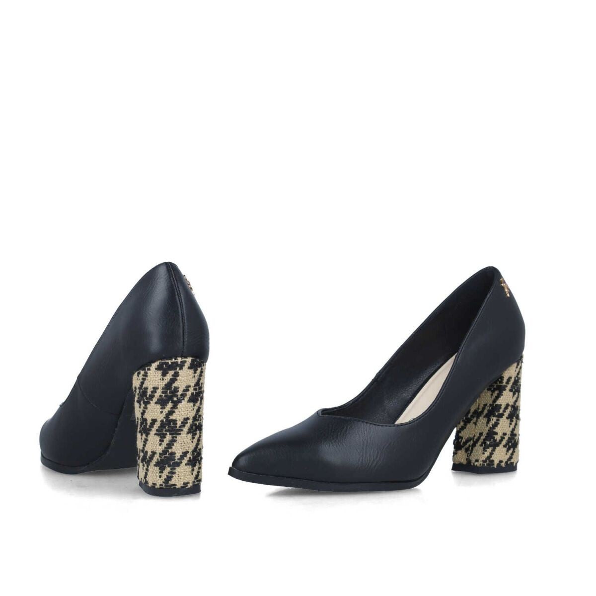 MENBUR 23312 Décolleté in Pelle Nera con Tacco Fantasia 10 cm, Sottopiede Morbido in Pelle.