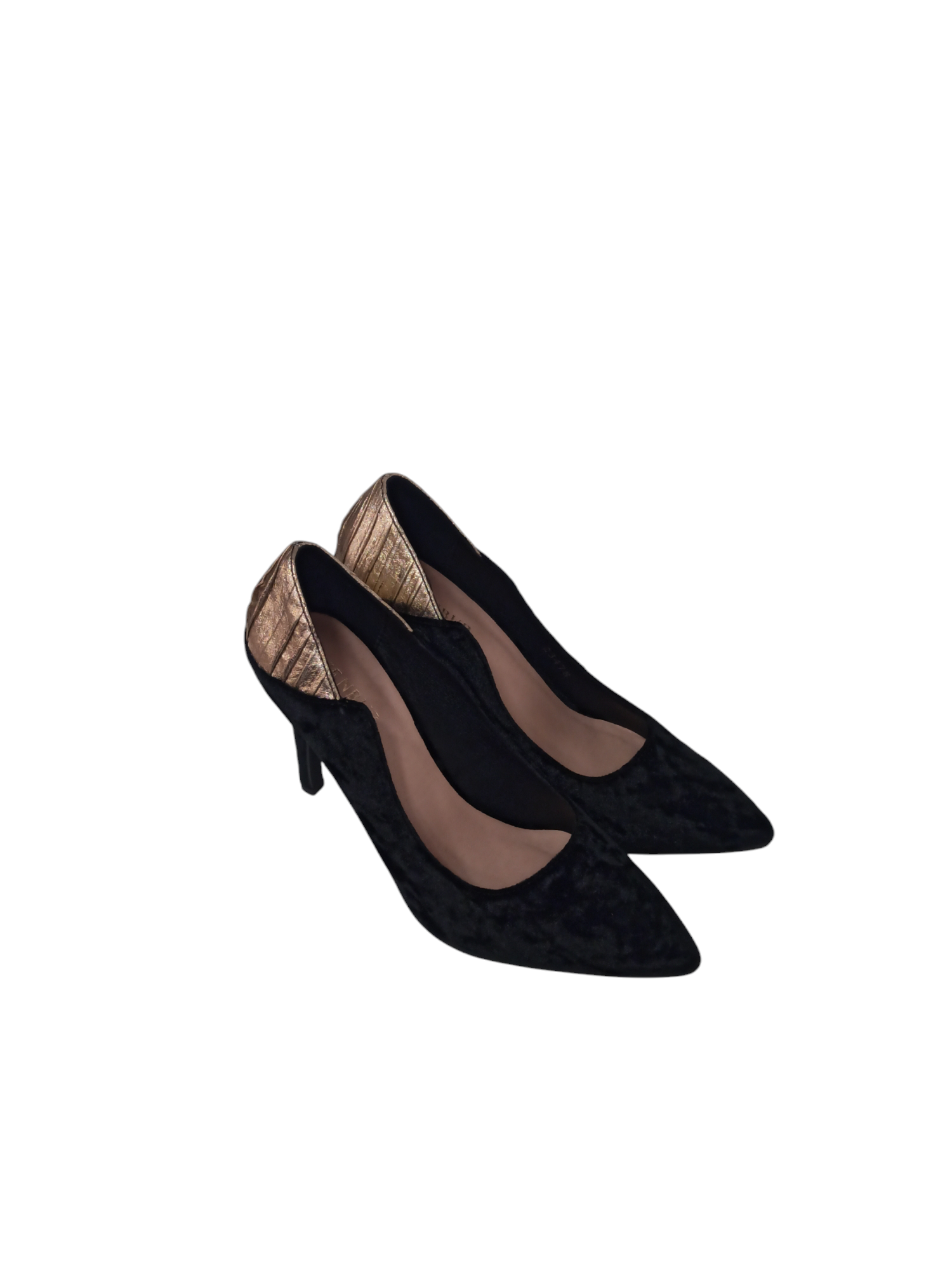 MENBUR 23478 Décolleté Elegante in Velluto con Dettagli Oro, Tacco 8,5 cm.