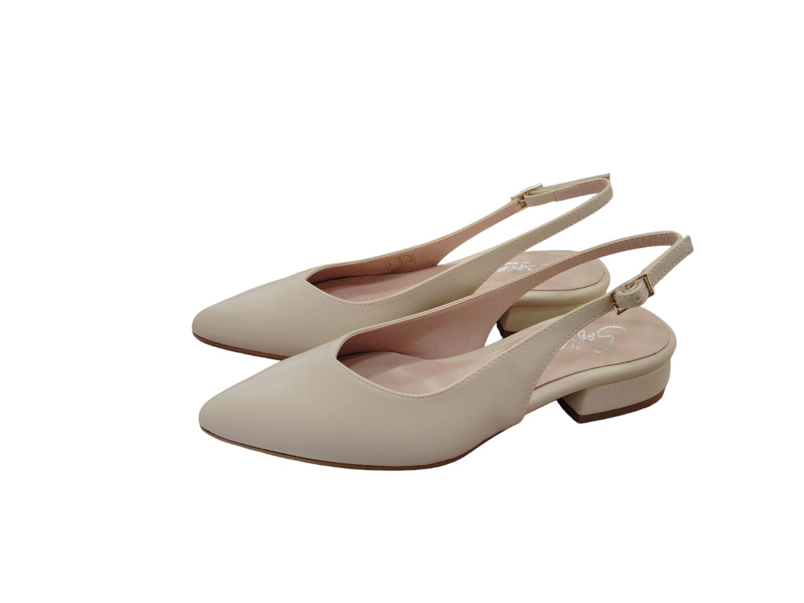 Slingback Beige a Punta in vera pelle con Tacco 3 cm, Cinturino regolabile, Vari colori