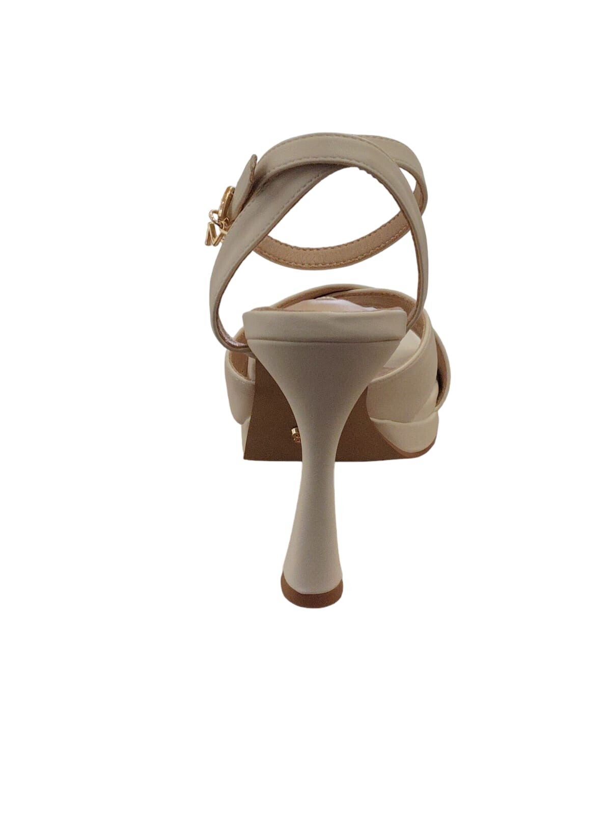 MB 87 Sandali Panna con Tacco Alto da Donna In Pelle, Platform in tinta, Cinturino alla Caviglia, Tacco 11cm
