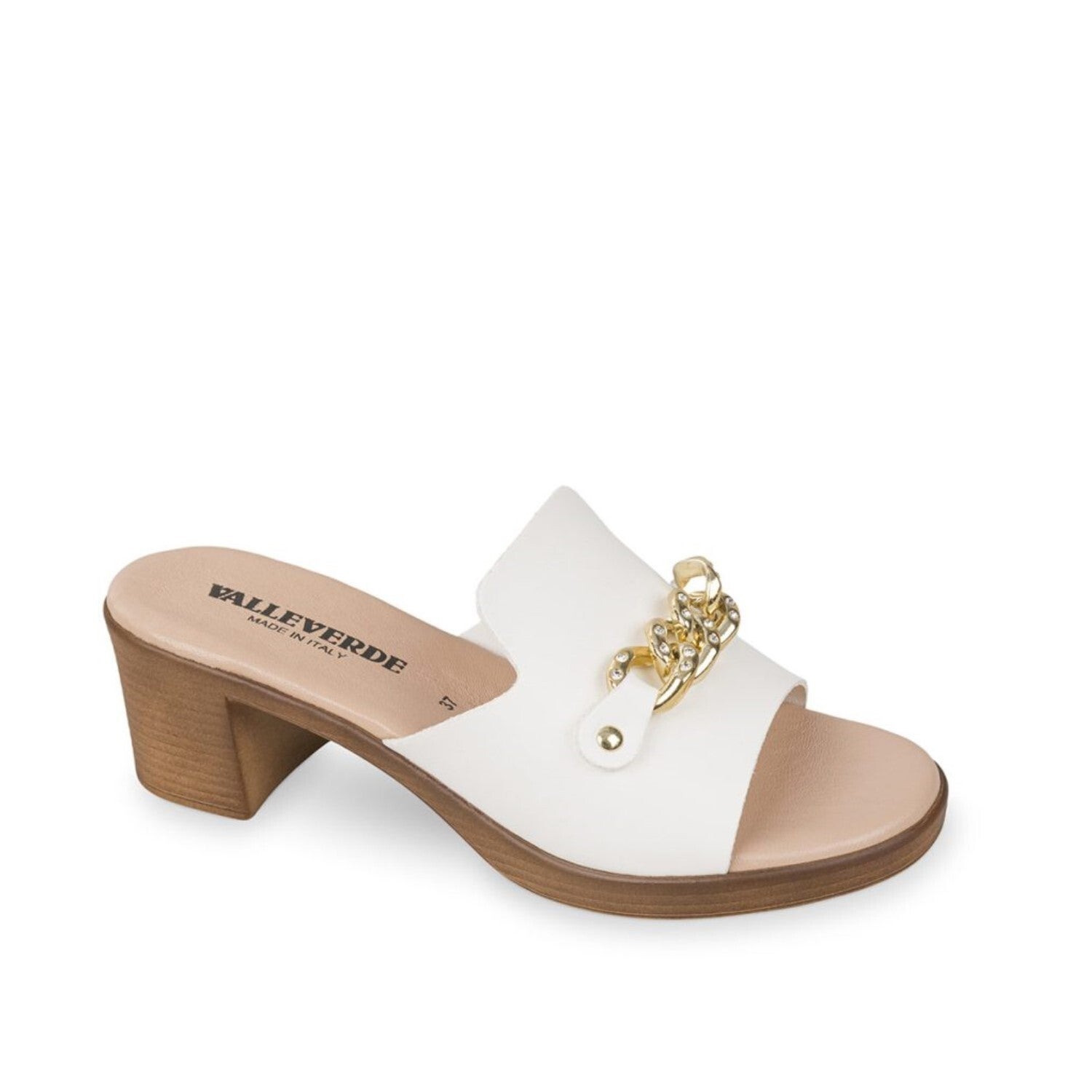 Questi sandali da donna Valleverde sono realizzati in pelle morbida e confortevole per offrire comfort dall'alba al tramonto. La fascia sintetica che avvolge delicatamente il piede è arricchita da una raffinata catena centrale arricchita di strass, per un look glamour e sofisticato. Il plantare foderato in pelle mantiene asciutti i piedi e ammortizza ogni passo grazie al suo spessore di 1 cm. Disponibili in due tonalità neutre, si abbinano facilmente a qualsiasi outfit per accompagnare le giornate estive con stile ed eleganza.
