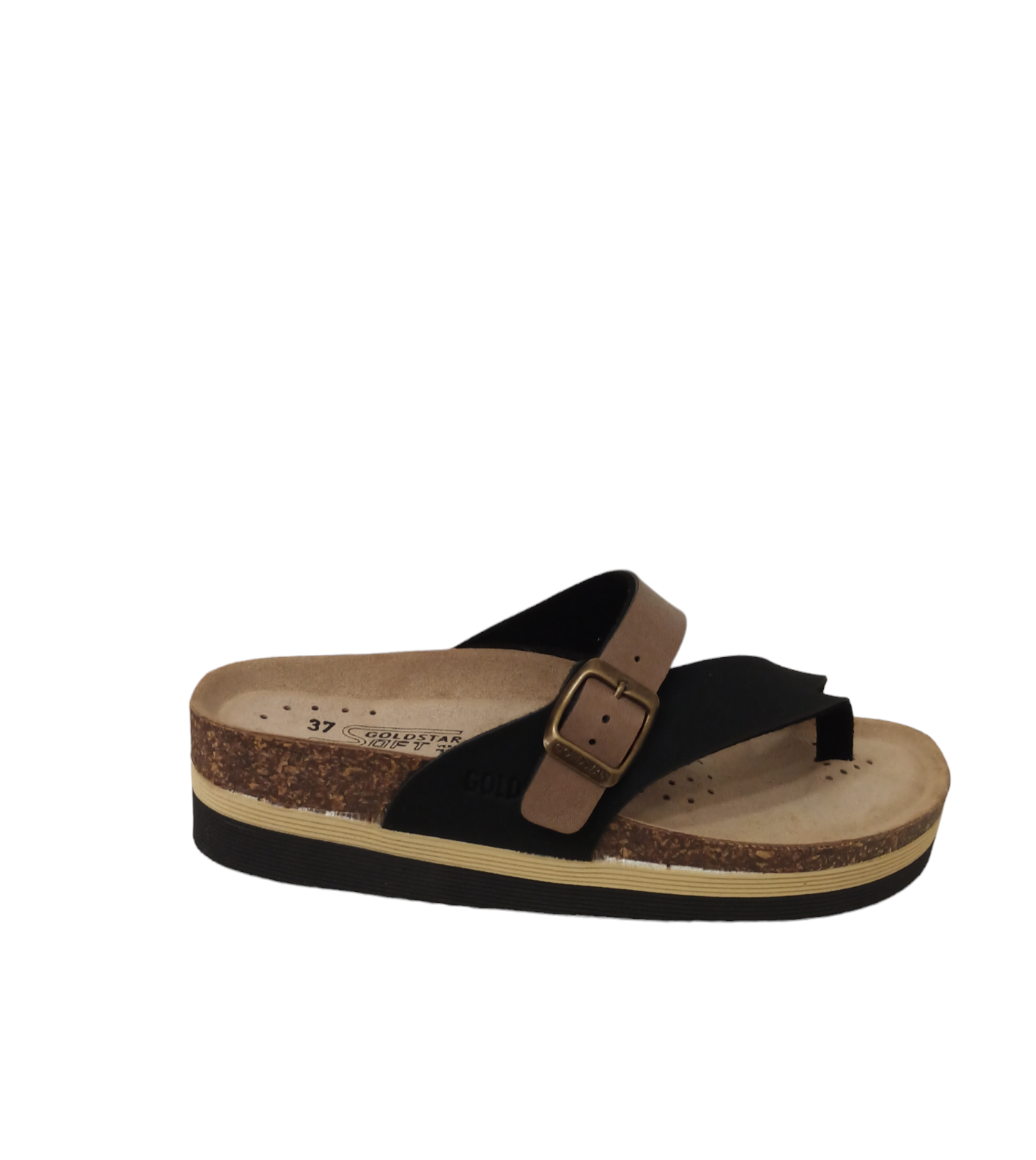 GOLDSTAR 4809 Monodito Bio Donna Colore Nero/Sabbia Modello Birky Suola Fussbett
