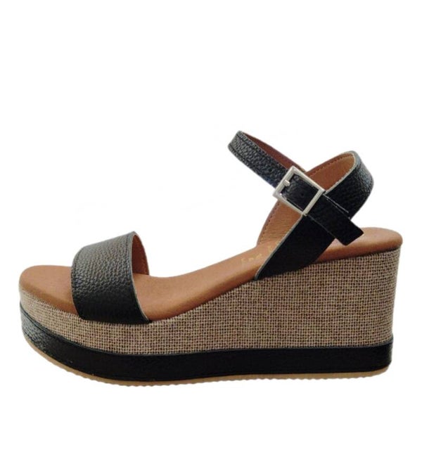 Sandalo in Vera Pelle con Fascia e Cinturino Regolabile. Il Sottopiede è Particolarmente Soffice in Memory e la Zeppa alta 7 cm , con rifinitura in Pelle come la Tomaia, assicura un Comfort Assoluto.