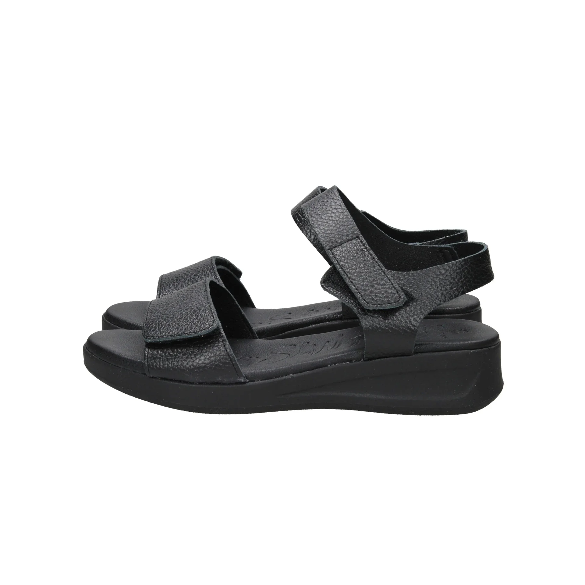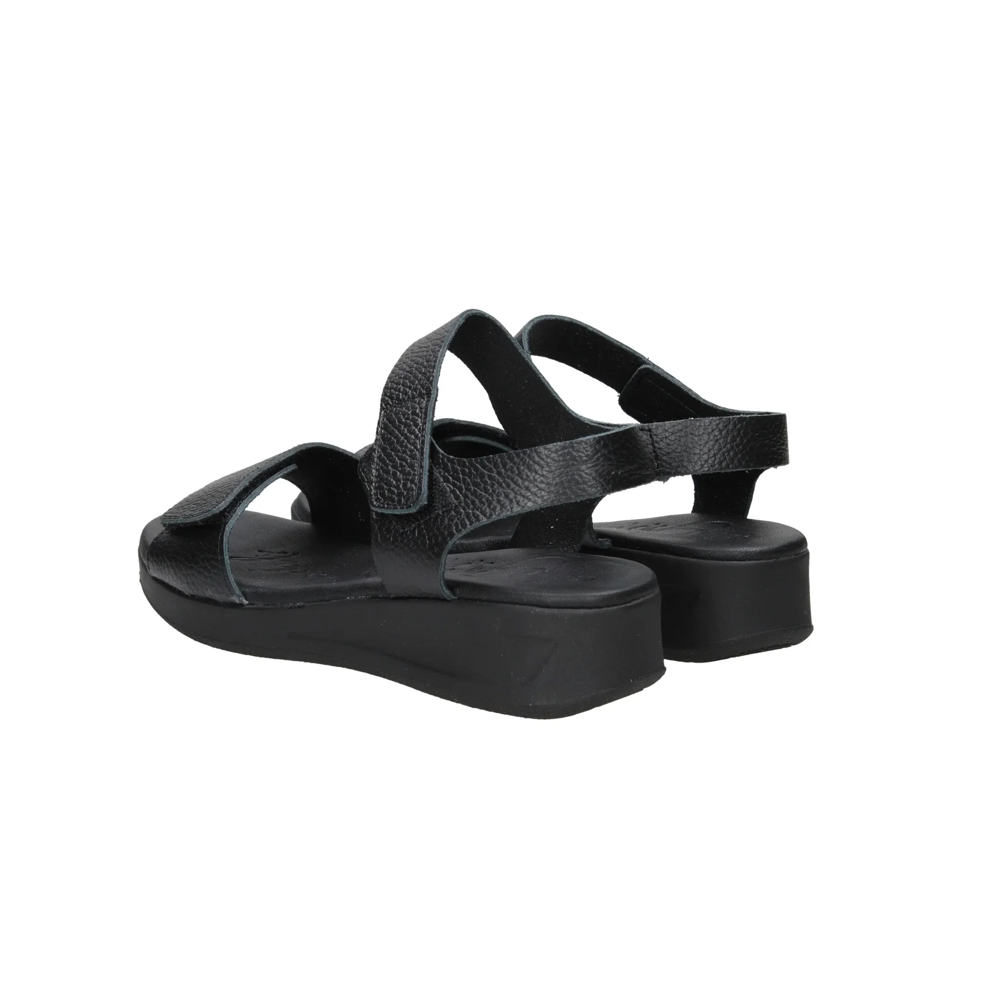 Sandalo in Vera Pelle, con Fasce a strappo regolabili e Soffice Sottopiede in Memory, con Zeppetta 3 cm, che assicura un comfort assoluto.