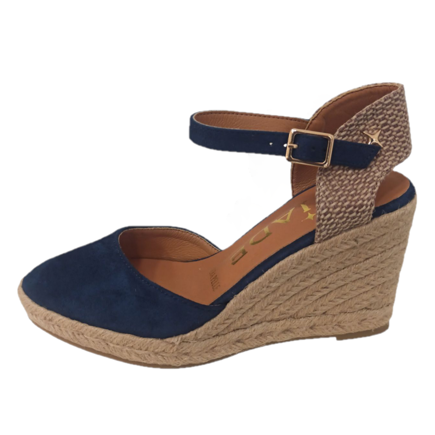 Le Jade Art. 3708 Espadrillas Da Donna Con Zeppa 8 Cm, in Camoscio Blu con Cinturino Regolabile, Suola in Juta e Sottopiede in Pelle