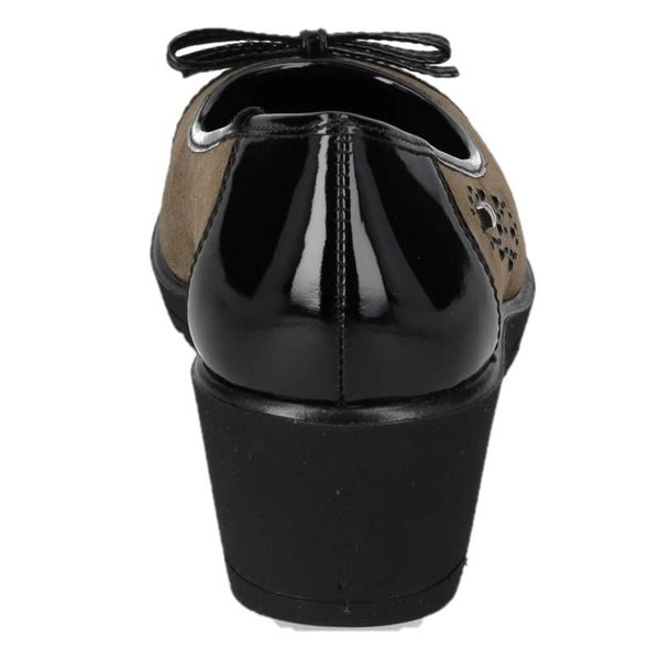 - DESIGN ELEGANTE: Scarpe da donna con zeppa in pelle verniciata nera e taupe, perfette per un look casual-chic e sofisticato