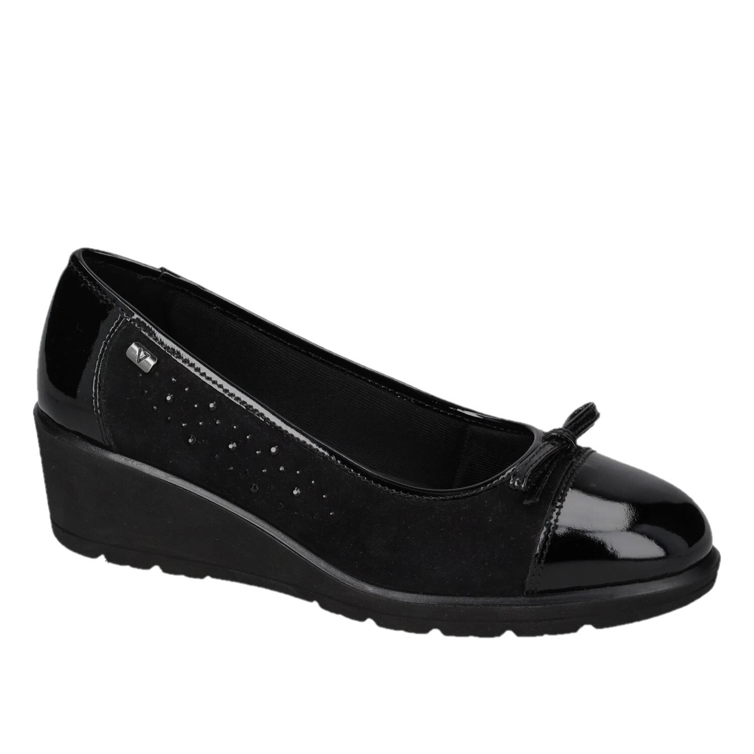 Valleverde 36340 Décolleté in Camoscio e Vernice con Zeppa 4 cm.