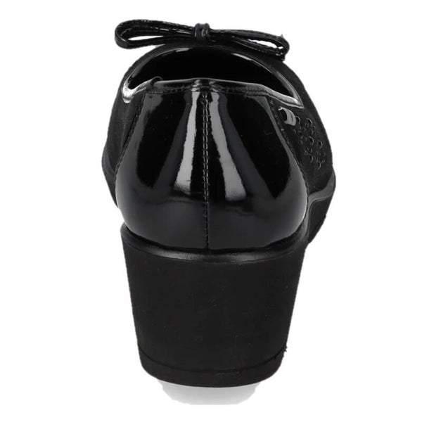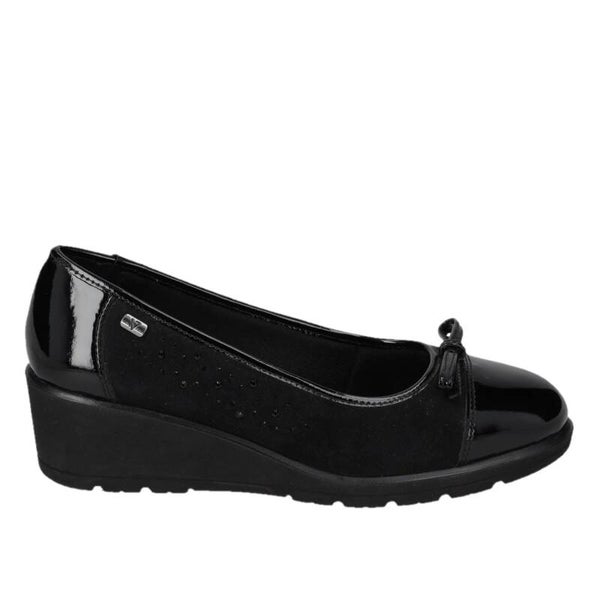 - DESIGN ELEGANTE: Scarpe da donna con zeppa in pelle verniciata nera e taupe, perfette per un look casual-chic e sofisticato