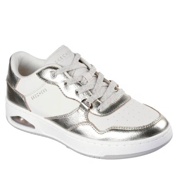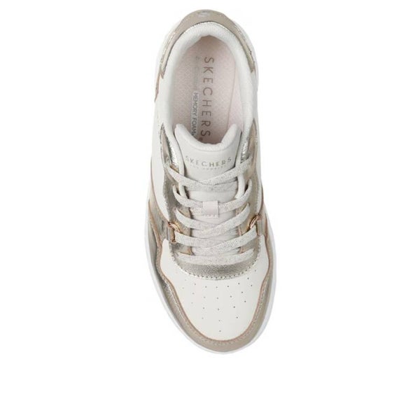 - DESIGN ELEGANTE: Sneakers sportive Skechers in bianco e oro metallizzato con dettagli lucenti e finiture di alta qualità
