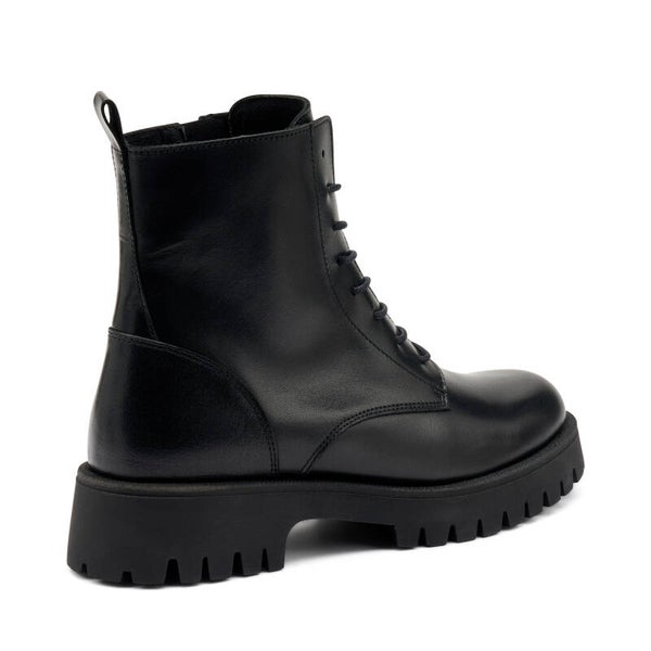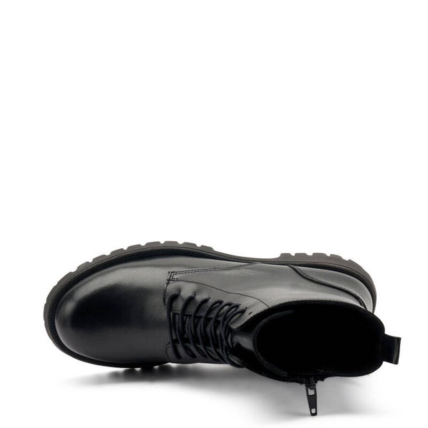 - Tomaia in morbida pelle con lacci in tinta e zip laterale