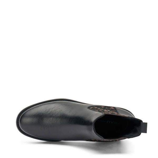 Questi eleganti stivaletti Chelsea da donna rappresentano il perfetto connubio tra stile classico e dettagli contemporanei. Realizzati in pregiata pelle nera, si distinguono per l'originale elastico laterale decorato con un raffinato motivo geometrico in tonalità bronzo che aggiunge un tocco di eleganza al design tradizionale. La silhouette pulita e minimalista è completata da una suola robusta ma sottile che garantisce comfort e stabilità. Il tacco basso e la costruzione di qualità rendono questi stivaletti ideali per un uso quotidiano. La punta arrotondata e la finitura lucida della pelle conferiscono un aspetto sofisticato, mentre la pratica linguetta sul retro facilita la calzata. Versatili e raffinati, questi Chelsea boots si abbinano perfettamente sia a look casual che più formali, dalle gonne ai pantaloni. La qualità della manifattura italiana assicura durevolezza e comfort nel tempo.