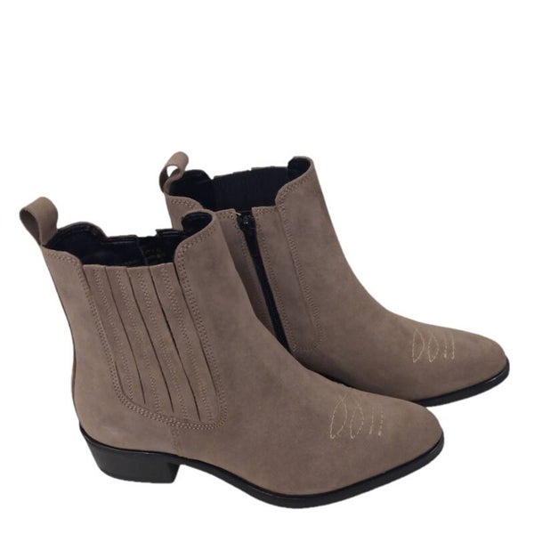 - STILE WESTERN: Stivaletti chelsea eleganti in camoscio beige con dettagli western, perfetti per un look contemporaneo e alla moda