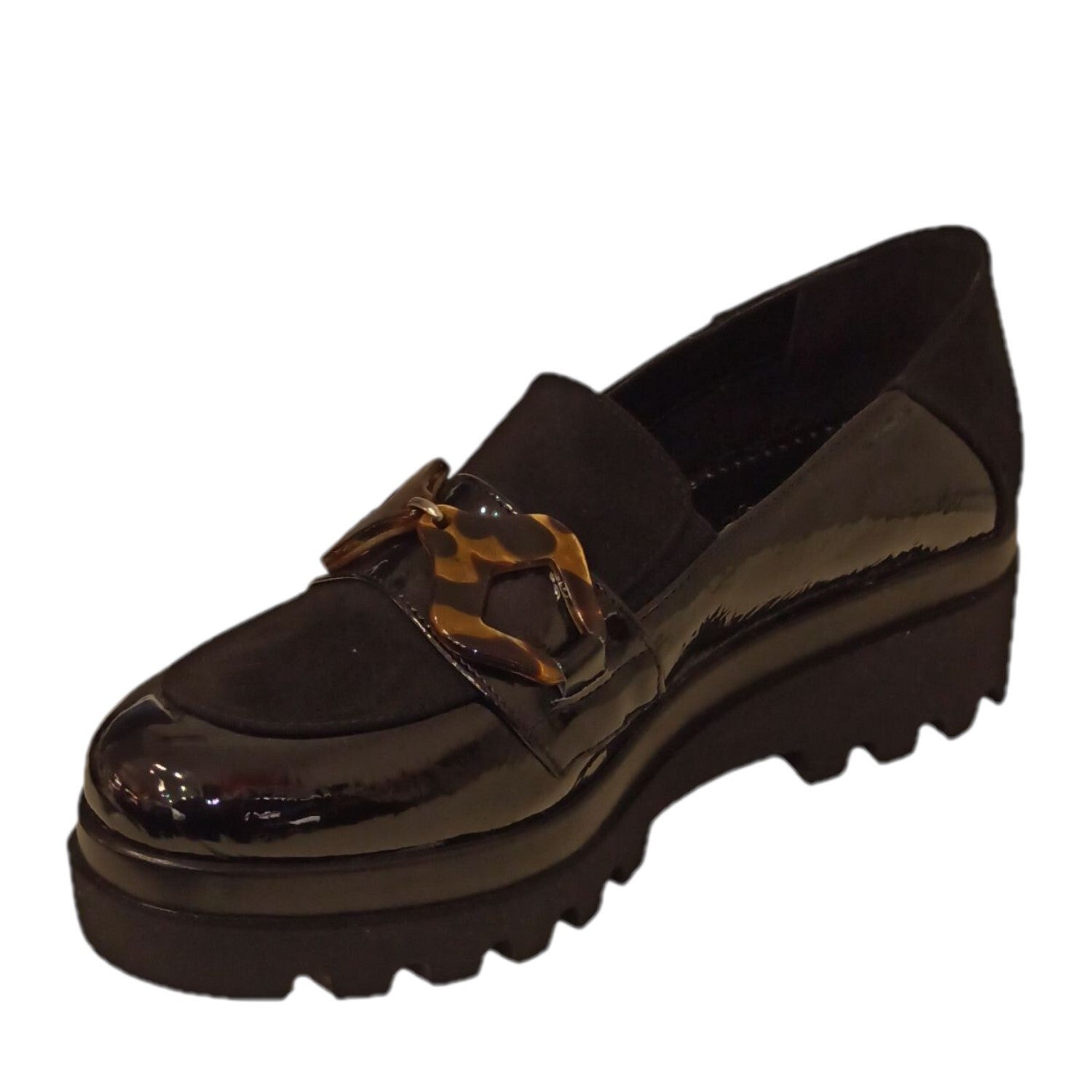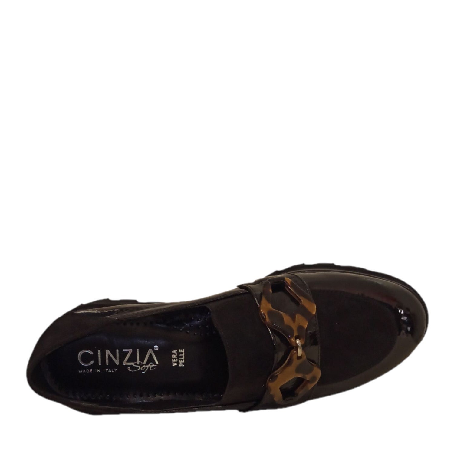 Questi eleganti mocassini platform da donna Cinzia Soft combinano stile e comfort in modo impeccabile. Realizzati in vernice nera lucida di alta qualità, questi mocassini si distinguono per il raffinato dettaglio decorativo in rhodoid che aggiunge un tocco di originalità al design classico. La suola platform in gomma antiscivolo non solo offre maggiore altezza ma garantisce anche stabilità e grip ottimale su diverse superfici. Il design versatile li rende perfetti sia per l'ufficio che per le occasioni casual-chic. La costruzione accurata assicura una calzata confortevole per tutto il giorno, mentre la finitura lucida in vernice aggiunge un elemento di lusso sofisticato. La combinazione di elementi classici e moderni rende questi mocassini un accessorio versatile per il guardaroba femminile contemporaneo. La qualità artigianale italiana si riflette in ogni dettaglio, dalla scelta dei materiali alla precisione delle finiture.