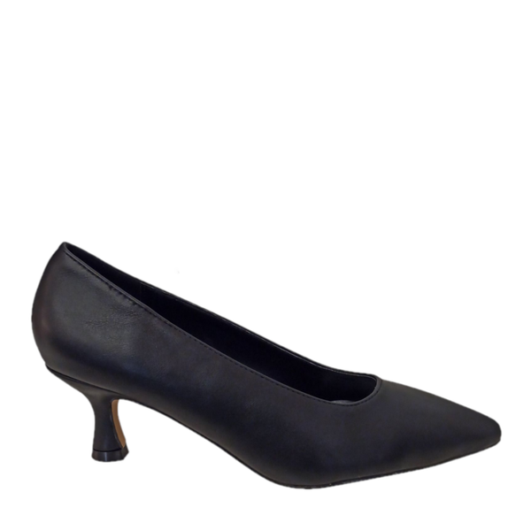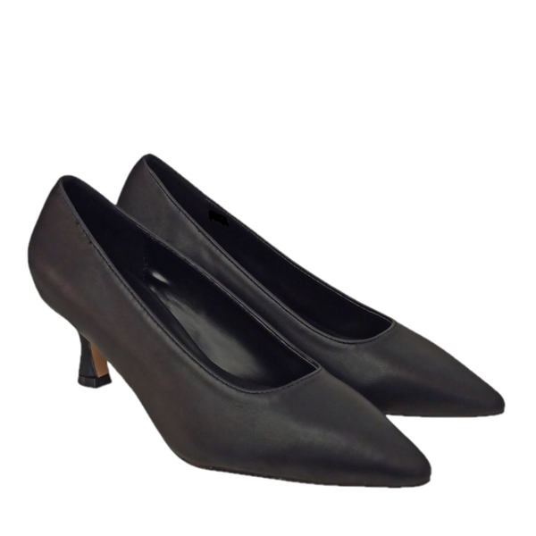 Realizzata in materiale sintetico di qualità, questa scarpa presenta una punta affusolata che slancia la figura e un tacco a rocchetto di circa 5 cm che garantisce stabilità e comodità anche dopo molte ore di utilizzo.