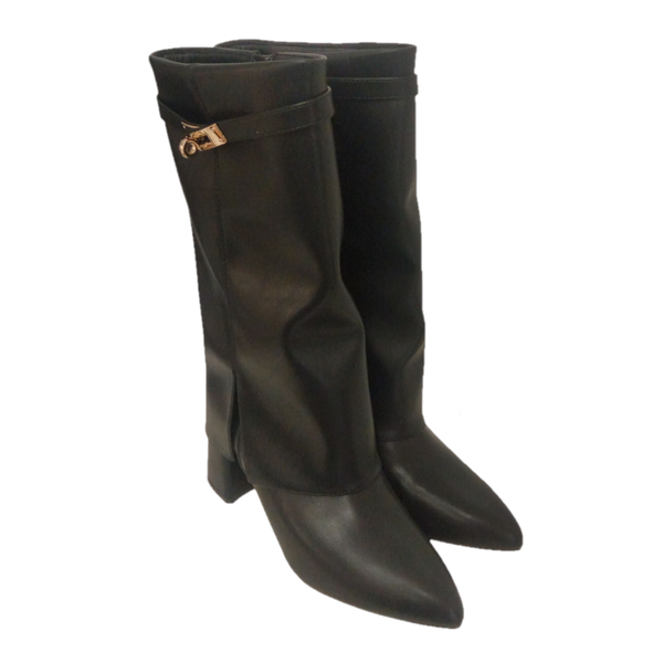 Questi eleganti stivali da donna presentano un design sofisticato e versatile, perfetto per completare qualsiasi outfit. Realizzati in pelle sintetica di alta qualità, offrono comfort e stile senza compromessi. Il tacco medio conferisce un'altezza confortevole ideale per l'uso quotidiano, mentre la punta affusolata aggiunge un tocco di raffinatezza. Un dettaglio distintivo è la fibbia decorativa in oro sulla parte superiore dello stivale, che aggiunge un elemento di lusso al design minimalista. La struttura a gambale alto si adatta perfettamente alla gamba, creando una silhouette elegante e slanciata. Questi stivali sono perfetti sia per l'ufficio che per le occasioni speciali, combinando funzionalità e stile. La chiusura è progettata per facilitare la calzata, mentre la suola robusta garantisce stabilità e durata nel tempo. Disponibili in elegante tonalità marrone, questi stivali sono un'aggiunta versatile al guardaroba di ogni donna.