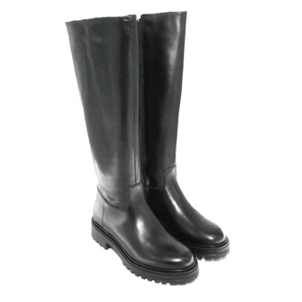 Scopri gli stivali donna in pelle nera ideali per chi cerca stile, qualità e comfort in un unico modello. Realizzati con pelle liscia premium, questi stivali al ginocchio offrono un design minimal e moderno, perfetto per outfit invernali, look casual chic e abbigliamento quotidiano. La suola carrarmato antiscivolo garantisce stabilità e sicurezza su ogni superficie, mentre la cerniera laterale interna permette una calzata facile e veloce.