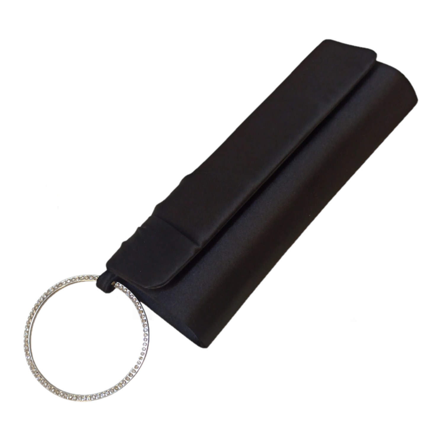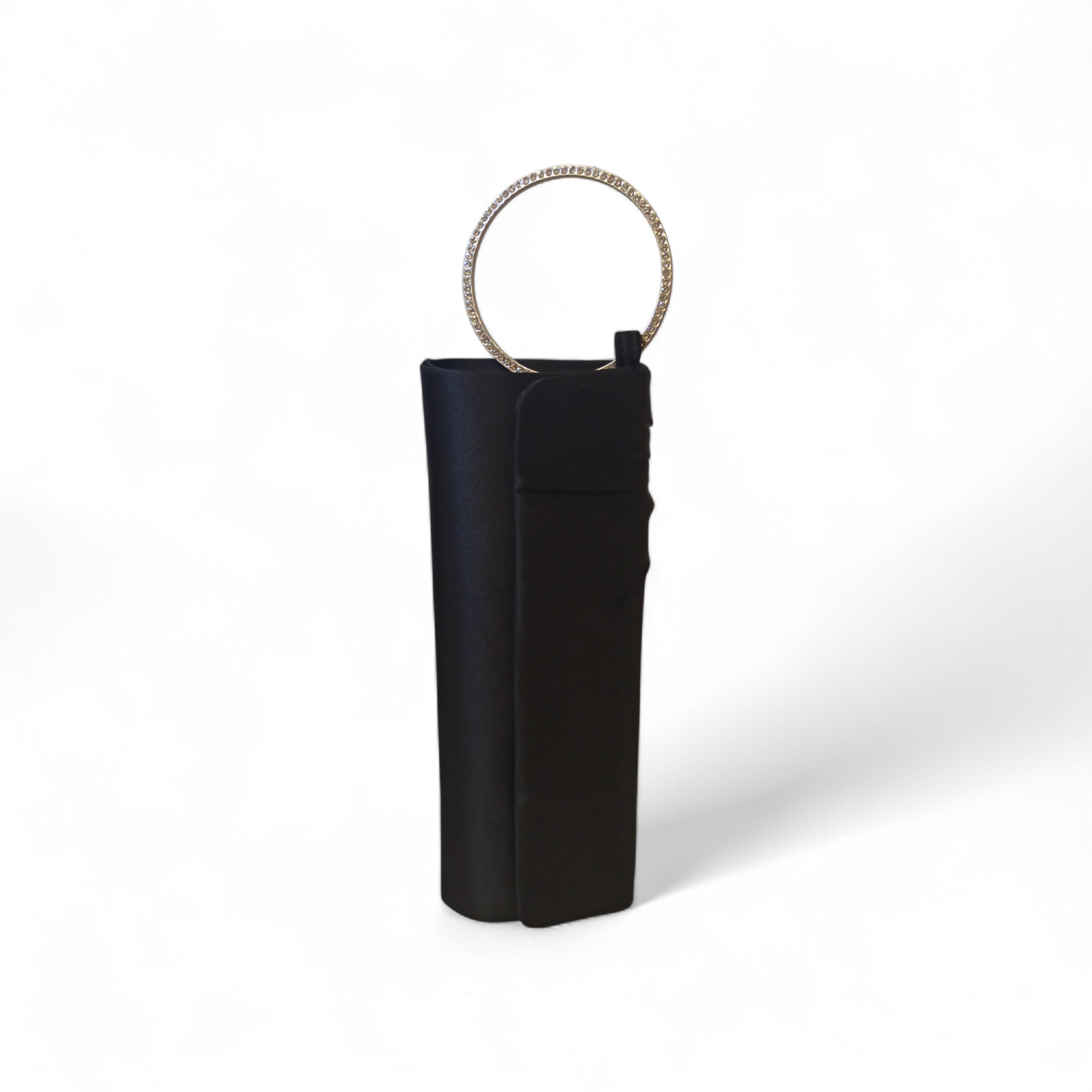 Questa pochette in raso nero è l’accessorio che completa ogni look da sera con classe. Il manico gioiello cattura la luce a ogni movimento, trasformando un design essenziale in un vero statement. Perfetta per matrimoni, party e occasioni speciali: piccola nelle dimensioni, grande nello stile.