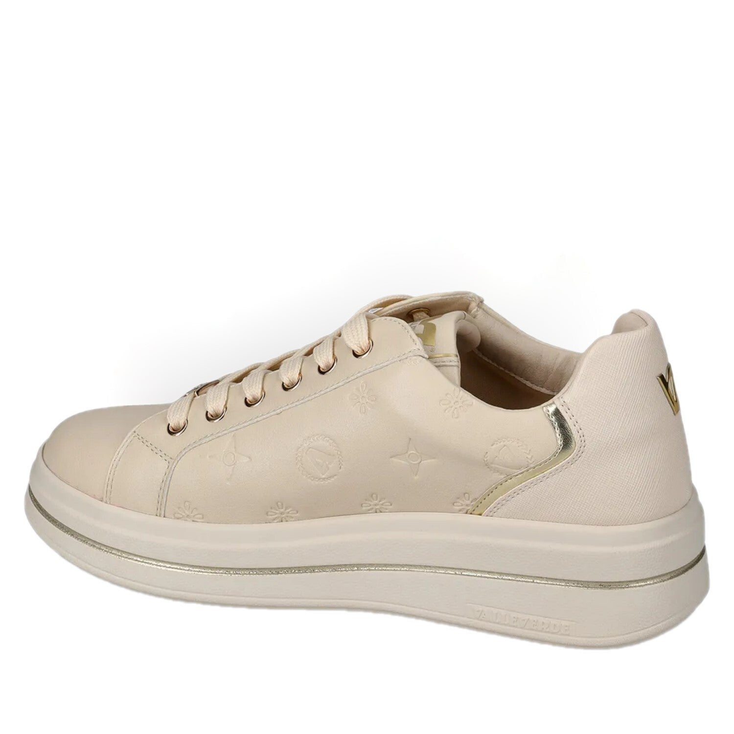 Le sneakers Valleverde 35494L sono la scelta perfetta per la donna moderna che desidera unire stile e comfort in ogni occasione. Disponibili nelle eleganti colorazioni blu navy e crema, queste scarpe si distinguono per il loro design raffinato e ricercato. La tomaia in pelle morbida è impreziosita da motivi in rilievo che includono il logo del brand, conferendo un tocco di originalità e classe. Il dettaglio del ciondolo dorato con logo agganciato ai lacci aggiunge un tocco di lusso discreto. I lacci abbinati al colore della scarpa, gli occhielli dorati e il profilo laterale in materiale laminato oro completano un look sofisticato. Il platform da 5 cm garantisce un'altezza aggiuntiva senza rinunciare al comfort, mentre la suola chiara offre un contrasto elegante. Ideali da abbinare sia a outfit casual che a look più ricercati, queste sneakers sono un must-have per ogni guardaroba femminile.